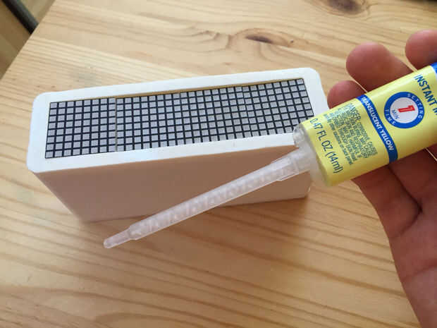 Siguiendo las indicaciones en la botella, aplica una línea delgada de epoxi todo el bisel del reloj. Con cuidado coloque la cara de acrílico en la parte superior, alineando los bordes con del cuerpo. Después de que el pegamento se establece, puede poner la cara de reloj hasta seco.