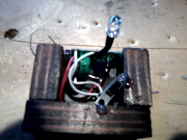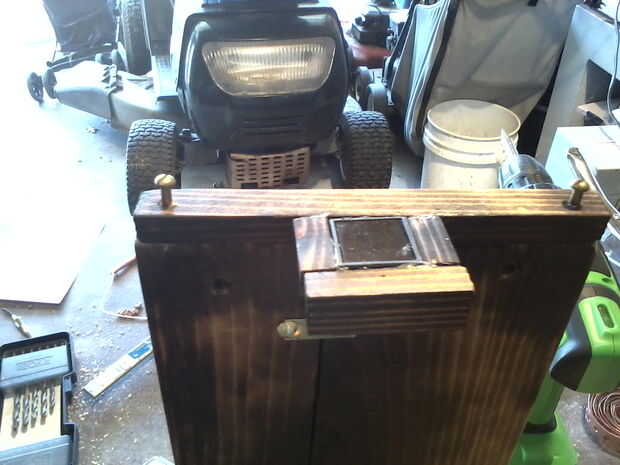 para la luz y la celda solar cortar pequeños trozos de una pulgada de stock y colocar tres de sus lados a la celda con el adhesivo caliente y luego pegar el cuadrado de madera a una tira de las cruces la parte superior de la espalda he añadido algunos más puerta de latón tornillos y dejó el largo para ascetas