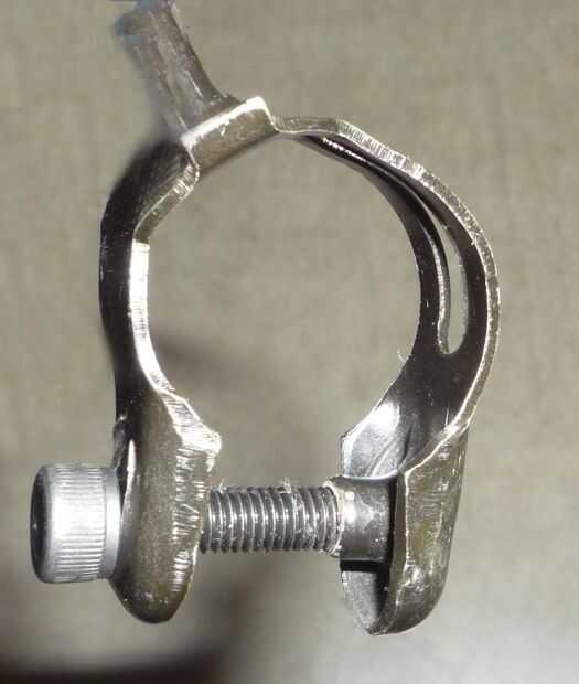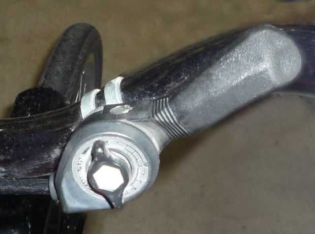 El hardware de montaje del manillar que usé es de un cambio de manillar reciclado.  Éstos son bastante comunes en las bicis de gama bajos (o al menos solían ser) por lo que podrás encontrar algunos en su recipiente de basura bicicleta local tienda.  Hay un montón de otras posibles fuentes de soportes de manillar.  Todo lo que realmente necesitas es algo que ajuste el manillar y que puede alojar el perno de montaje del martillo... Feliz caza ;)