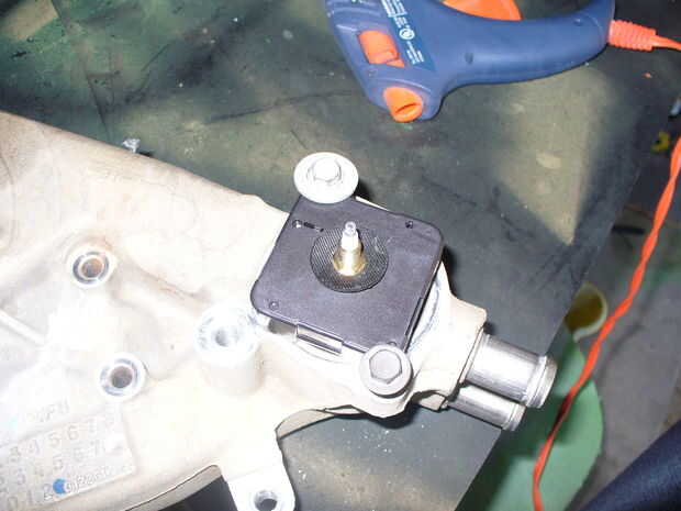 a continuación necesitamos fijar el caja a la bomba de engranaje relojes. Lo hacemos con 2 tornillos y arandelas. Asegúrese de que los tornillos son del mismo tamaño como los pernos del termostato original.