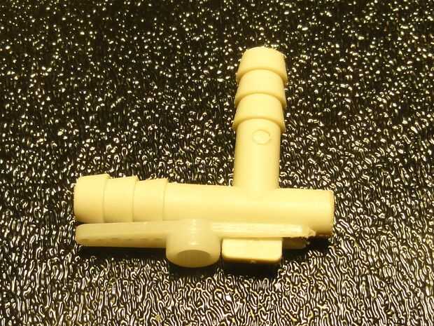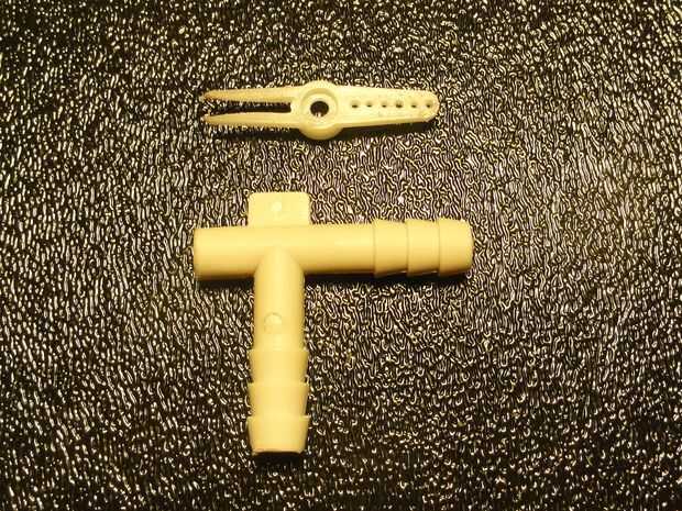 Cortar una muesca pequeña en el brazo del servo a ajustar la lengüeta de la T-fitting. Más tarde este asegurado en su lugar con una banda de tubos o pequeños cables. La muesca ayuda a asegurar los puntos de la boquilla en la misma dirección en el brazo del servo.