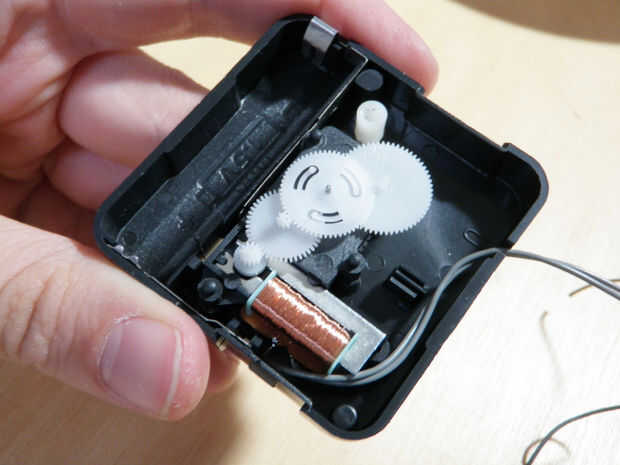 El movimiento del reloj tiene un paso a paso de bobina solo motor interior. La teoría básica aquí es que queremos desconectar la bobina del circuito de sincronización del reloj y luego conectar cables a la bobina de modo que nosotros podemos controlar nosotros mismos.