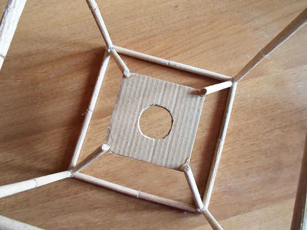 Dibujar el contorno de su sostenedor de bulbo en el centro de los cuadrados de cartón y recortarlo. De esta manera podrás insertar el portalámparas en él.