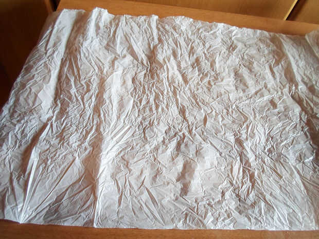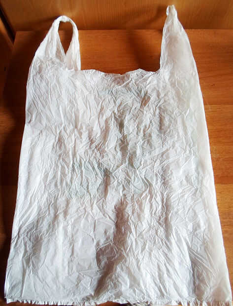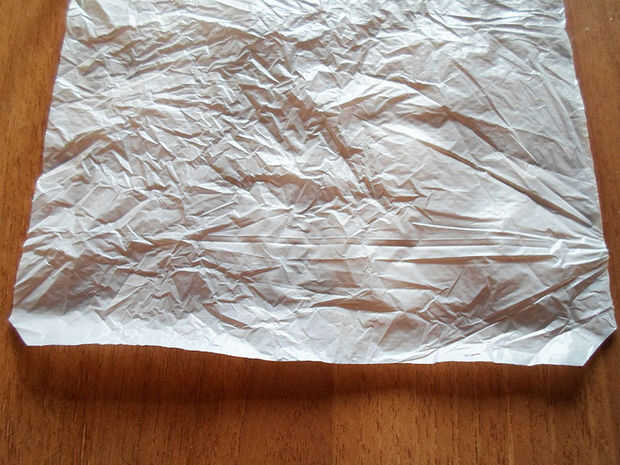 Corte un lado de la bolsa y abra la bolsa para que tenga una hoja grande de plástico.