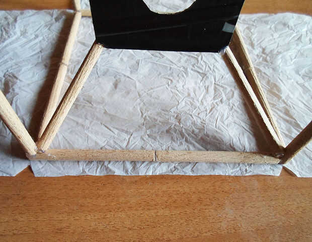Cortar todos los ángulos de su nueva pieza de plástico y coloque el cubo de madera en la plaza central de la plástica.