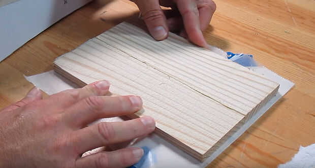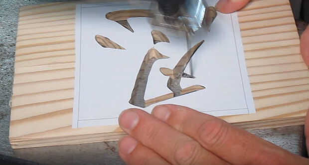 Cortar dos piezas de 2 x 4 que son aproximadamente 1/2" de espesor y pegan juntos. Coloque la plantilla de panel y corte con una sierra de contornear.
