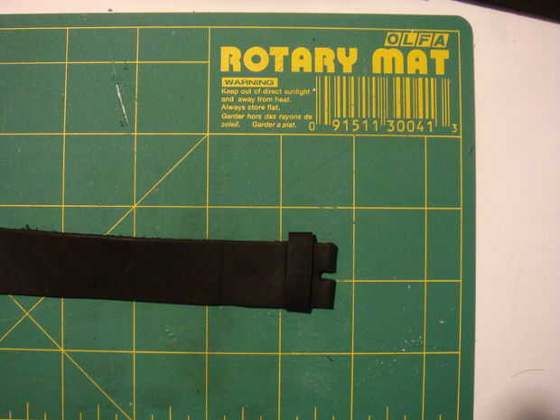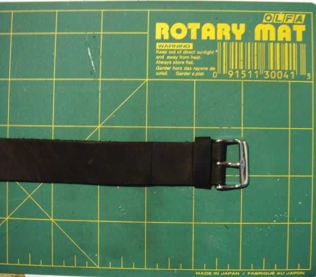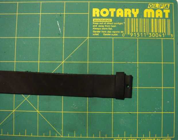 En este punto, tiene una correa de cuero largo con un extremo. Pronto, usted tendrá que cortar esta pieza para hacer dos secciones: la parte de la banda con los agujeros y con la hebilla.