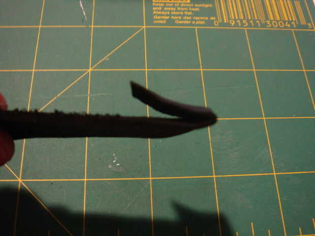 -Una vez que esta sección adelgazada, tome un palillo de dientes y plegar el extremo. Presione el cuero hacia abajo sobre el palillo de dientes para empezar a establecer la forma.