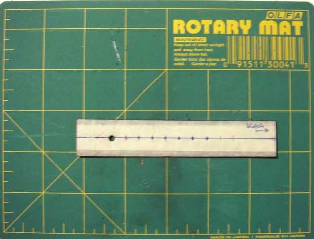 -Medir y marcar puntos que son de 3mm de separación. Esto es preferencia personal, usted puede hacerlos más cerca o más lejos aparte si quieres. También puede hacer tantos agujeros como usted tiene gusto.