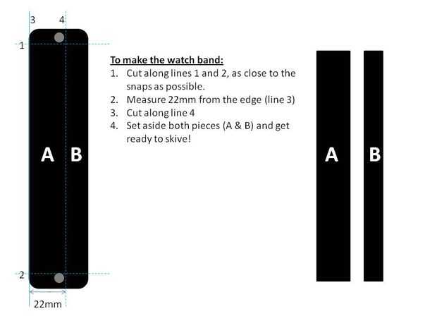 Usted tendrá que hacer dos lazos, uno que se pega cerca de la hebilla y uno que se mueve libremente. Aquí, raspar la pieza delgada de piel que se corta cuando la banda. Su mejor para skive toda la pieza luego córtalo al tamaño.