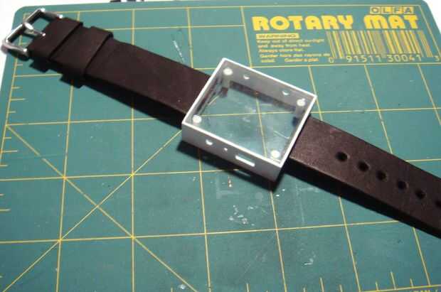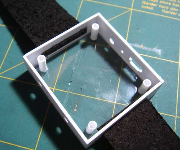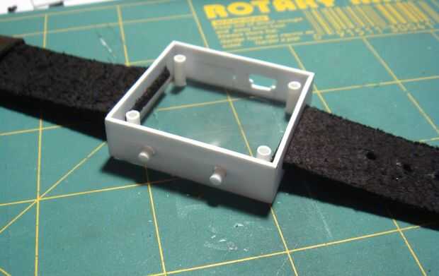 -Tome las dos secciones de su venda de reloj e insertarlos en las ranuras de extremo de la caja del reloj