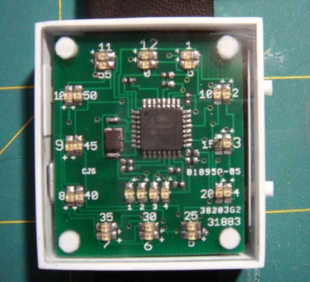 -Los LEDs en el reloj se arreglan mucho como un reloj analógico estándar de 12 horas.