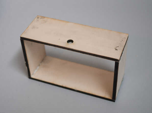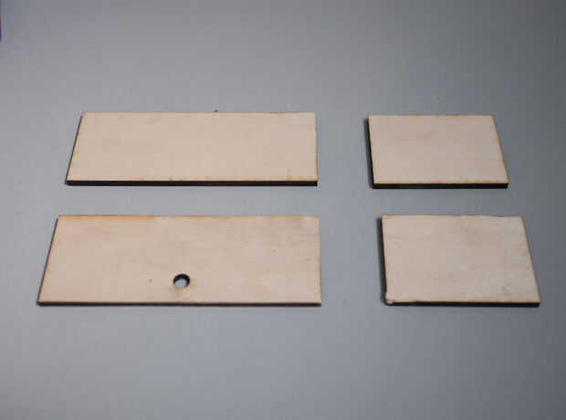 Cortar cuatro piezas de madera contrachapada para formar la caja. Estas piezas fueron láser para permitir a sólo 1/16 de pulgada margen alrededor del reloj. Con un pequeño margen el reloj ayuda a mantener el cuadro de estructura aún más. O podrías pensar de esto como casi un skin para el reloj.