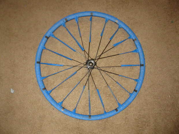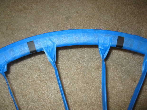 Una vez que ha encontrado sus hora marcadores necesita enmascare todo lo demás. Utilicé un trozo de cinta eléctrica flaco que me diera el ancho de la marca de hora. Sentí que no era necesario a la máscara del centro de la llanta.