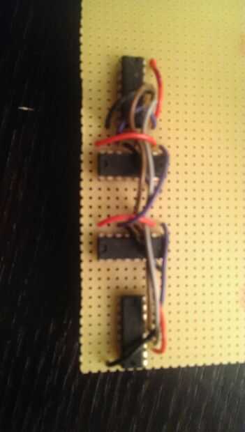 El otro sin embargo nos ahorró mucho tiempo, ya que nos permitió a "hardwire" la mayoría de las conexiones necesarias en el cambio de registros: utilizar un PCB de doble capa impidió el resultado ser a grande.