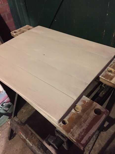 A continuación se que frota con algunos áspero papel de lija para tomar la mayor parte de la pintura y dejar le un aspecto rústico muy agradable. Apliqué una capa de barniz transparente mate para terminar.