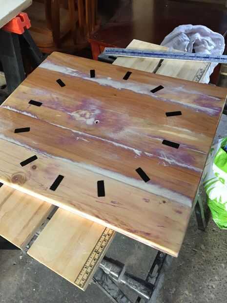 Usé un viejo cara de reloj para marcar todas las posiciones de la hora, luego cortar una plantilla de alguna tarjeta de 30 x 10 mm y cuidadosamente utilizado algunos pintura negra en aerosol para marcar la cara del reloj. Limpió los usando papel P500 arena para obtener todos los bordes recto debido a la pintura un poco sangrado. Aplicada una última capa de barniz transparente mate y dispone el mecanismo del reloj.