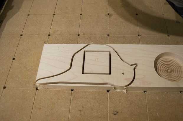 El cuerpo está hecho de dos partes; un frente y una hacia atrás. La parte delantera contiene un bolsillo circular grande con un agujero en el centro. La parte de atrás tiene un gran agujero cuadrado que tendrá en cuenta el mecanismo del reloj. El archivo Zip contiene una imagen SVG de las partes delanteras y traseros. Se arreglan para que quepa en una pieza de madera tan fina como 100 mm. He utilizado un gratis, navegador basado en paquete de CAM llamado makercam para hacer las trayectorias de herramienta. Deberás hacer una trayectoria de herramienta separada para el bolsillo, es muy recomendable que utilices una herramienta de gran diámetro para esto. Cortar el bolsillo puede tomar mucho tiempo si usted está usando la misma herramienta de todo el trabajo. MakerCAM puede hacerlo fácilmente por lo que le permite guardar trayectorias de herramienta individual o seleccionar algunos de exportación como un grupo.