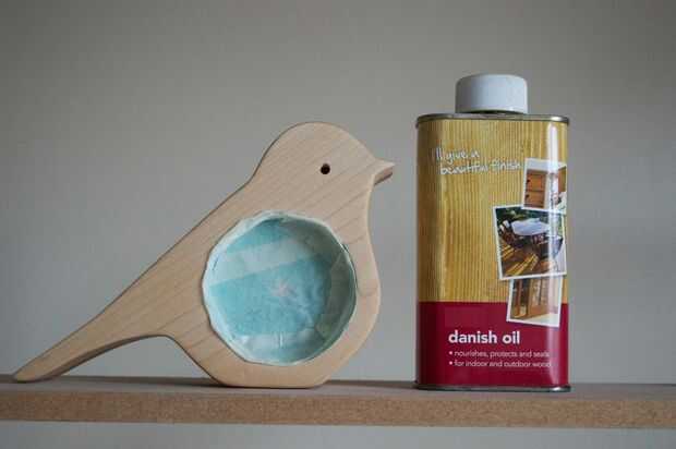 Una vez seca la pintura decidí usar aceite danés para sacar el grano. Guardé el círculo de la cinta que corte el paso de pintura y re utilizado (junto con algunas nueva cinta) para proteger las superficies pintadas del aceite. Aceitar la madera es totalmente opcional, pero se puede ver el efecto que tiene en las fotos. Si usted decide usar aceite, asegúrese de que la madera esté limpia y polvo libre antes de limpiar una pequeña cantidad de aceite en el grano con un paño limpio y sin pelusa.