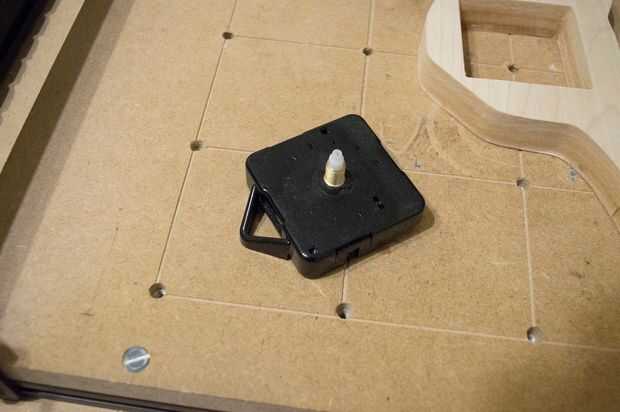 Compré un movimiento de reloj de cuarzo no TIC-TAC de un vendedor en ebay. Tienes mucha elección en la compra de uno de ellos por lo que es importante elegir la correcta. El cuerpo del mecanismo debe caber en el agujero cuadrado en la parte posterior de las aves, la mayoría de estos mecanismos son un tamaño estándar de 55 x 55 mm que se ajusta sólo si se quita el gancho en forma de triángulo en la parte superior. Lo hice en un par de segundos con la dremel pero es plástico solamente y se puede quitar fácilmente muchas maneras. Lijado de los tocones ayuda a que se vea bonito y ajuste cómodamente.