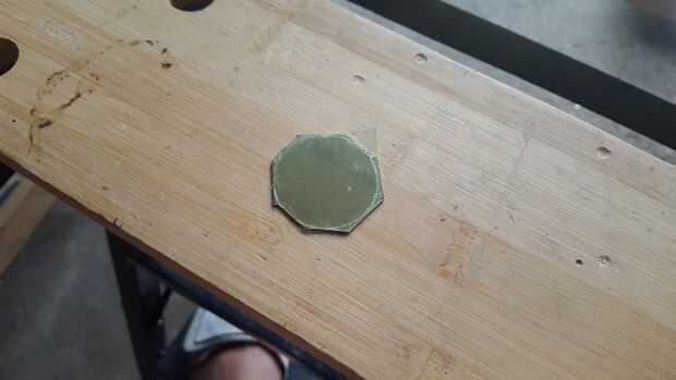 Primero, puntuación un círculo con un compás en una placa de metal, corte su forma áspera con una sierra, luego pulirlo con alguna lija de curso.