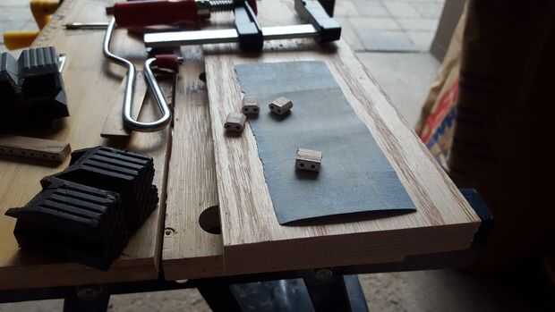 Para estos enlaces de centro, perfore un agujero directamente a través de toda la pieza y cortar, pulir a tamaños adecuados.