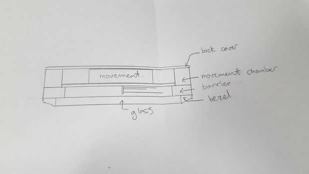 Para mi original diseño (ver última foto segunda), tenía el vidrio se sientan justo debajo de la tapa bisel, permitiendo que el cristal para conseguir empujado en el caso del reloj si a se aplicó una presión. Por lo que terminó con un nuevo diseño, donde la tapa bisel sosteniendo el vidrio, y la capa de 'barrera' actuará como una barrera física que impide que el vidrio siendo empujado más en la caja del reloj y la esfera del reloj desde que empujó hacia el exterior (ver última foto)