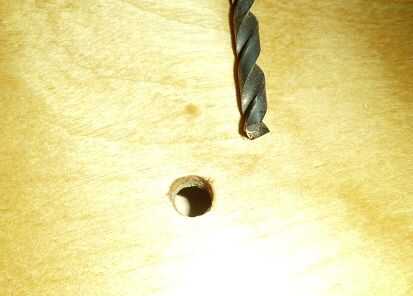 Después de la parte del reloj de transferencia de diseño en madera, taladre a través del orificio para el cañón de reloj.
