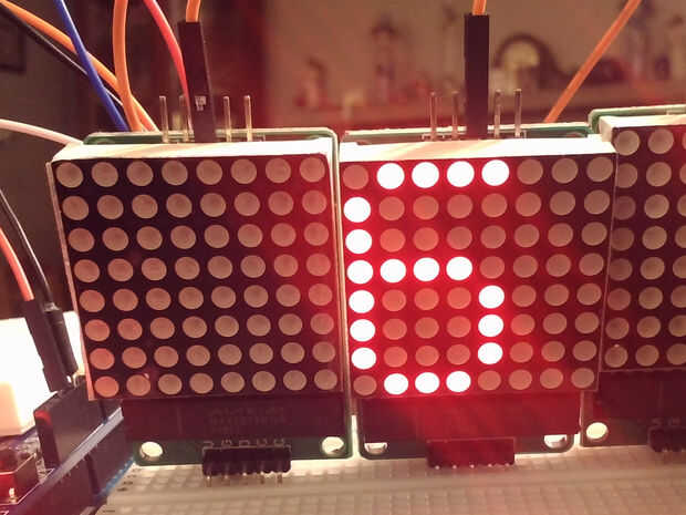 Tenga en cuenta que los números se muestran alineado a la izquierda en cada matriz de LED. No he investigado corregir esto.