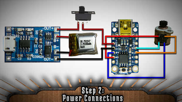 Puesto que no es realmente la mejor idea para cargar la batería mientras se utiliza, podría añadir un interruptor al circuito para apagar y encender el Abalorio. Ahora el truco está en todos los componentes usando una cantidad mínima del alambre de la soldadura. Puede utilizar las imágenes para este paso como guías.