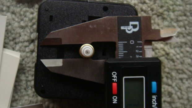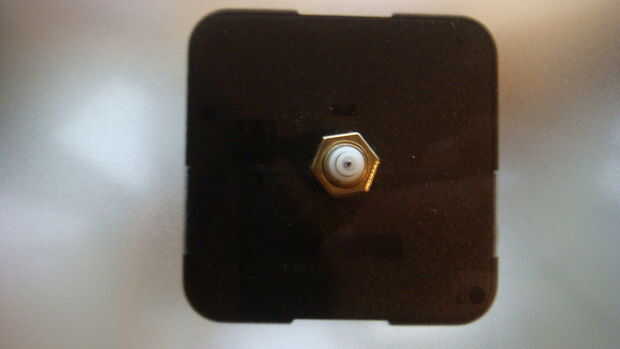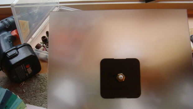 Taladro un agujero en el centro de la marca en el acrílico y asegúrese de que el reloj se ajusta a través de.