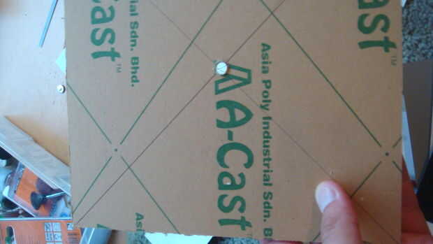 Para perforar el agujero para el mecanismo de marcar el centro del acrílico por regla dos líneas diagonales desde las esquinas opuestas. Donde se unen las dos líneas será el punto central y el punto perforado.