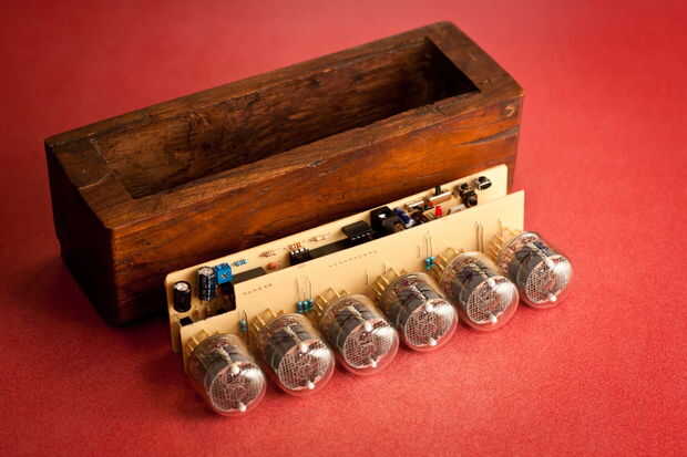 Reloj de nixies de caoba y bronce (con control IR y UART)