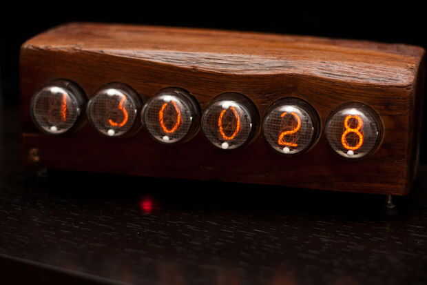Reloj de nixies de caoba y bronce (con control IR y UART)