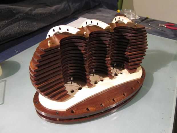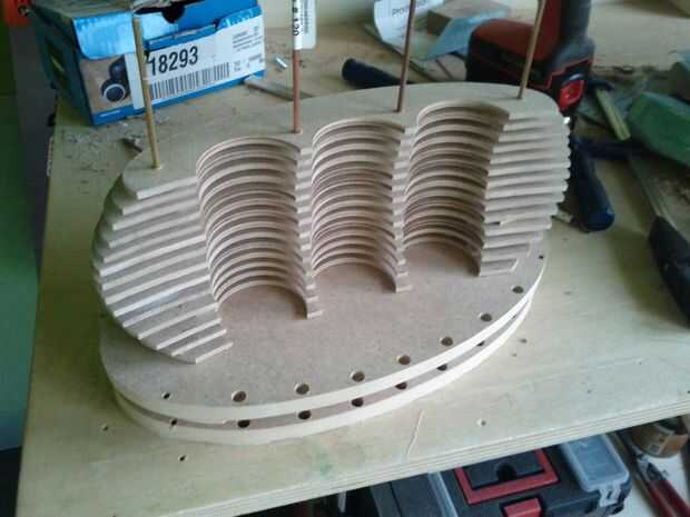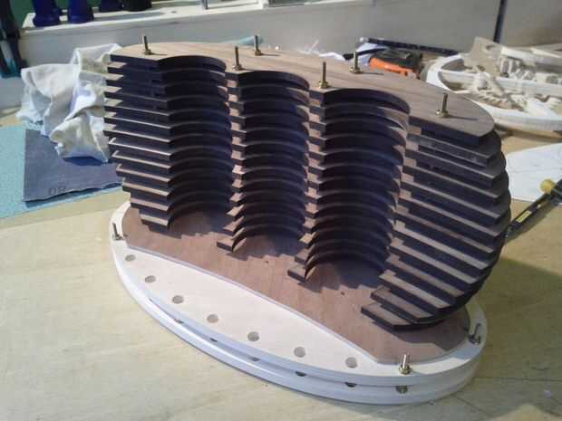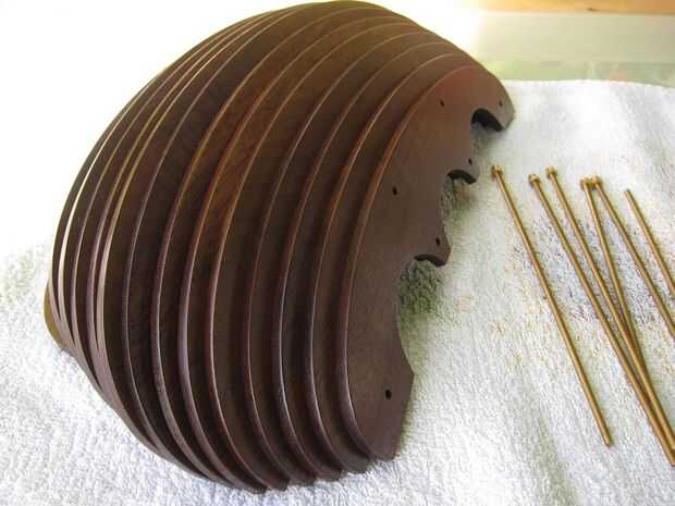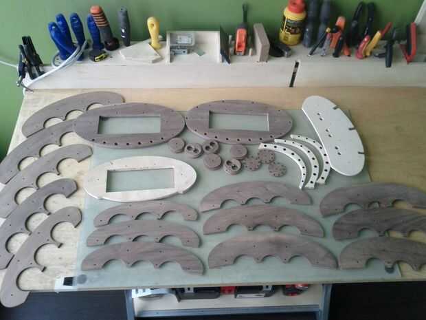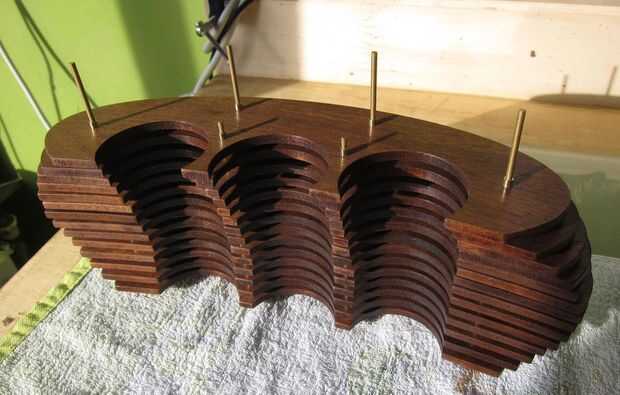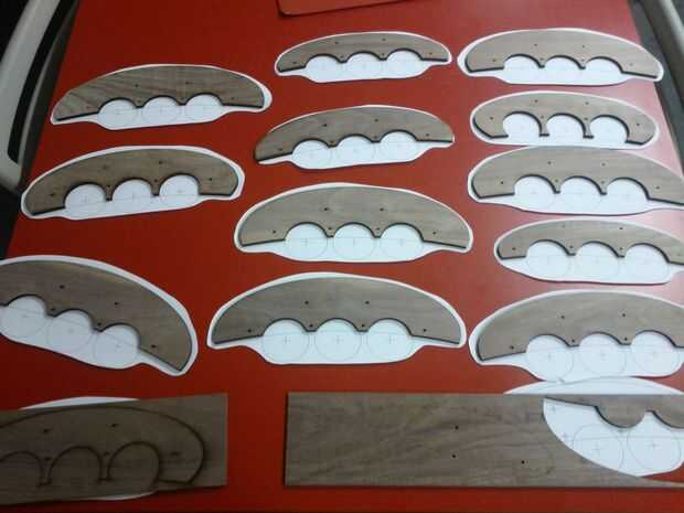 Ordené unos 5mm hojas de nogal grueso y todas ellas cortadas por láser que las curvas precisas. Las formas de corte son desde el diseño 3d, sólo tenía que convertirlos a formato del vector.