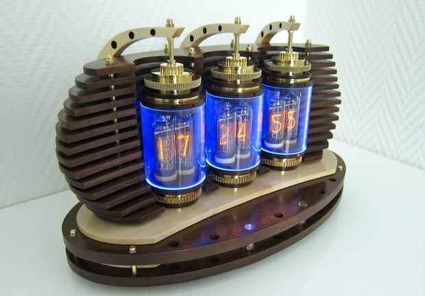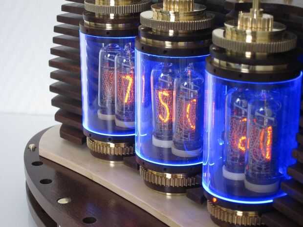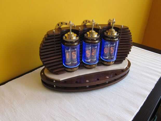 Reloj de nixies de caoba y bronce (con control IR y UART)
