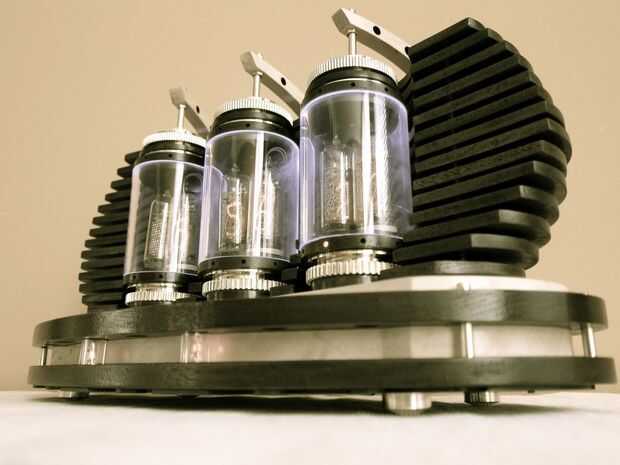 HolaAquí es Cíclope... todo el metal, brillante, muy industrial. Me puedo imaginar sentado en la chimenea de Harkonens Barón...He estado queriendo construir un reloj de nixies dígito por un tiempo ahora, miró a su alrededor el taller y me encontré un