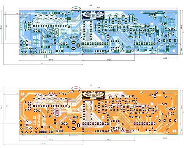 Después de muchos prototipos que terminé para la construcción de un gran número de juntas listos para llenarse de componentes. Realmente los prototipos han sido grabadas con cloruro férrico, y si no quieres pagar por una fabricación profesional, puedes seguir este paso de mi primer ible de reloj nixie.