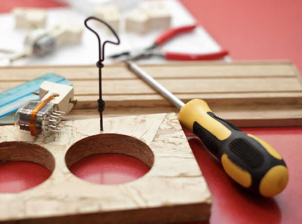Yo a mano lo agujeros perforados detrás el tablero frontal, justo por encima de los asientos de las lentes. Seis tornillos mantendrá los soportes de madera conectados con el tablero.