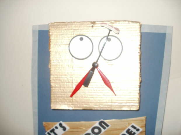 Coloque la esfera del reloj en el fondo y opcionalmente agregar un letrero, que en mi caso dice, su tiempo del tocino!