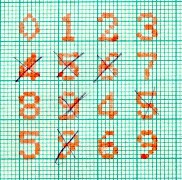 Es simple. Coge un lápiz y marca dentro de los cuadrados de la zona de 7 x 5 y tratar de hacer el resultado como letras y números.