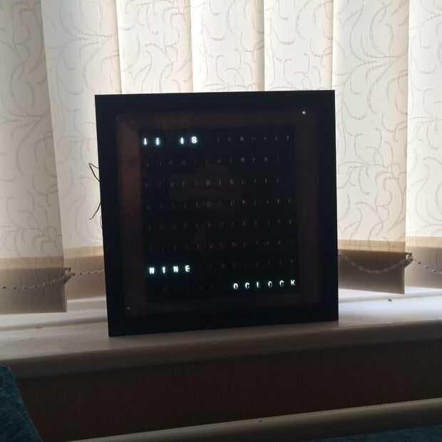 En este proyecto se detalla cómo construir un reloj basado en arduino da la hora en palabras. Por ejemplo, "Son las dos y media".Este proyecto es la versión española de (que a su vez se basa en otros proyectos anteriores).Hay pocas diferencias r