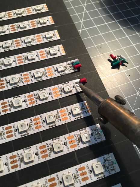 - Primera tarea es la soldadura de los cables que viene con las tiras de LED.