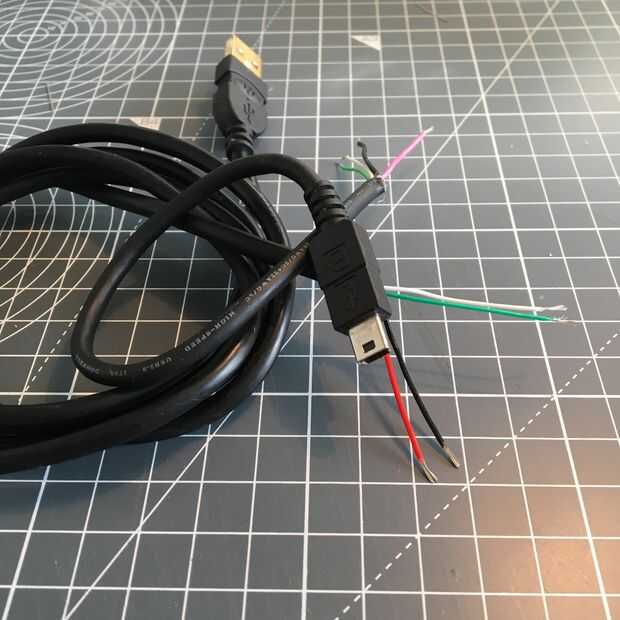 Utilizamos el Arduino Mega para alimentar los LEDs para la prueba, y tuve que reducir la intensidad del color, incluso la Mega no puede proporcionar suficiente corriente para iluminarlo todo. Yo no trabajo el punto, pero tira de cada color en brillo máximo 20 mA. Realmente suman. El Arduino Nano sin duda no puede suministrar la corriente que necesitamos. Así que ya he hackeado 2 cables USB. Cortar el extremo dejando 6" le permitirá aprovechar al cable usb para obtener 500ma completo de una toma usb, mientras que también alimentar el Arduino y transferencia de datos. Este 'golpe' se conecta a los terminales en el tablero de energía junto con los cables de los LEDs.