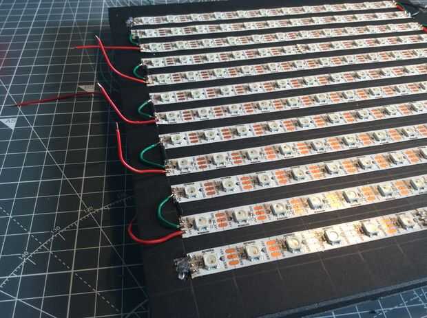 La tarea de soldar realmente no necesita mucha instrucción, solo Únete a GND a GND, etc. al final de cada tira. No emocionante, pero es necesario.