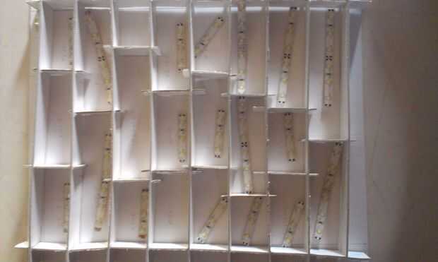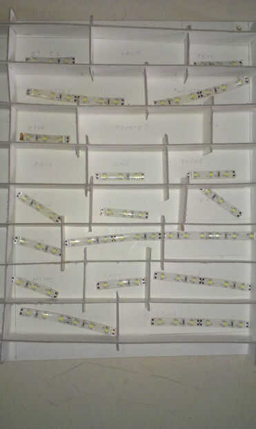 - Corte tiras de montaje Junta del tamaño pueden ser 1,5 cm... Esto es para hacer compartimentos, el tamaño de las palabras. Esto evitará que la luz de una palabra para difundir e iluminar las palabras circundantes.