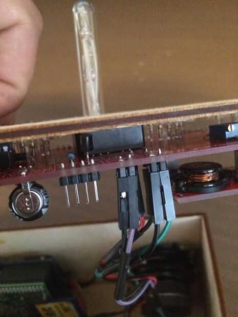 En el tablero del reloj verás 2 pares de orificios de etiqueta "tubos" y "RGB", soldar un par de pines macho encabezado a cada uno y luego conectar los cables de puente de botón correspondiente. La Junta reloj sabe apagar estas características cuando la ruta está "en corto" por lo que técnicamente, se se empujar el botón "ON" para desactivar estas funciones.