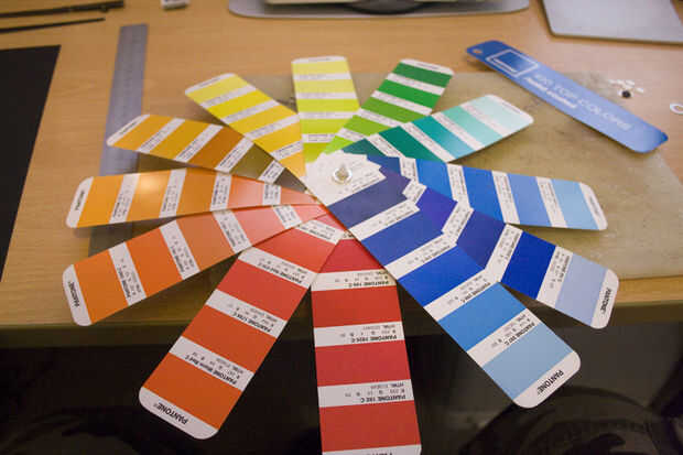 Aproximadamente escoger dos colores que no coinciden. Luego alinear los agujeros en el centro y había pegado en pares.