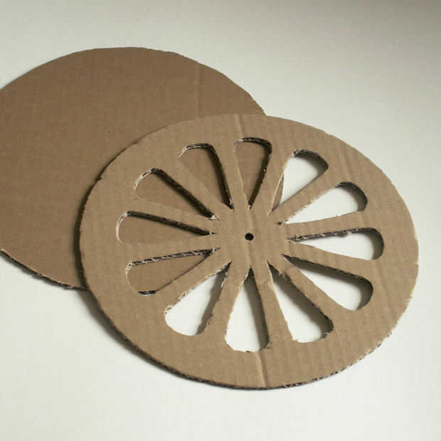 La esfera del reloj se hará realidad de dos capas de cartón. Como con el patrón, sólo traza la tapa sobre la cartulina dos veces. Usando un cuchillo del Exacto, corte cuidadosamente hacia fuera de ambos círculos. Asegúrese de colocar algo debajo del cartón para proteger la superficie que está trabajando.