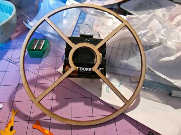 3. tomar el círculo más grande y pégalo en la parte posterior. Usted notará que el círculo interior de la pieza grande es del mismo tamaño que el círculo en la cara. Intente su mejor para alinear los centros. Yo comentar porque soy un vaquero de papercraft y me pegue primero, sentirse frustrado más tarde.
